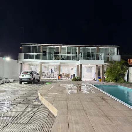 Guests can enjoy a seaside sea view from a terrace at the beachfront Casa Beira Mar Lha De Itamaraca Villa, 10 minutes by car from Refugio Ecológico Charles Darwin.